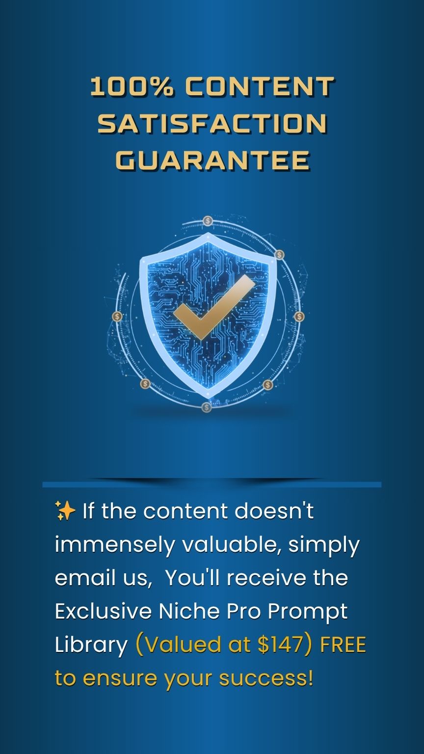 We stand by our 100% Content Satisfaction Guarantee. If you don't find value, just email us. We won't waste your time or money—we'll grant you access to the Exclusive Niche Pro Prompt Library (Valued at $147) FREE to ensure you get maximum benefit.Export to Sheets